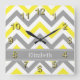 Yellow Dk Gray White LG Chevron Gray Name Monogram Square Wall Clock