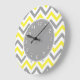 Yellow, Dk Gray Wht Large Chevron ZigZag Pattern Large Clock