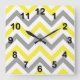 Yellow, Dk Gray Wht Large Chevron ZigZag Pattern Square Wall Clock