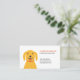 Smiling Yellow Dog Business Card Template. Great for dog sitters, dog trainers, dog walkers, doggie day care, groomers, veterinarians, and practically any business professional that is a fan of Golden Retrievers. An easy template to fill out with your contact information and address. Colors and fonts are all fully customizable. Available in a variety of paper choices. Also choose between standard corners or modern rounded corners. With these cute cartoon dog business cards you're sure to leave a positive impression!