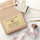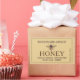 Honey label with Honeybee and double border on a honey-yellow background. Also available on kraft-colored, white and ivory backgrounds.