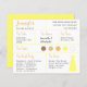 A butter yellow bridesmaid information card, including information about the wedding date and location, the wedding colors, the bridal party, the bridesmaid dress and a bridesmaid proposal message. In the upper left corner, the name of the bridesmaid is written in an orange handwriting script. In the lower right corner, there is a butter yellow dress - a modern shade of yellow. In the center, there are the wedding colors in circles. The colors, including the color of the wedding dress, can be changed.