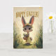 This charming Easter card showcases an adorable baby bunny in a light yellow dress and a colorful flower crown, holding a basket of decorated eggs. Surrounded by painterly meadow greens, warm sunlight, and fluttering butterflies, the artwork blends whimsical storybook charm with a soft, hand-painted feel. Perfect for kids, families, and anyone who loves sweet, uplifting spring designs. Printed on premium cardstock for a beautiful seasonal keepsake.