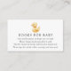 A book request insert card for baby shower. Featuring a pretty yellow duck with poem: "ONE SMALL REQUEST, WE HOPE NOT TOO HARD PLEASE BRING A BOOK INSTEAD OF A CARD THEY'LL CHERISH THE BOOK, WELL LOVED OR BRAND NEW PLEASE SIGN THE INSIDE WITH A MESSAGE FROM YOU!"