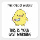 Yellow Duck Caption Funny Quote Sayings Square Sticker