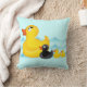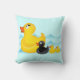 Individuality! Be Different! A single black rubber duckie, along with Yellow Rubber Ducks, playing in the blue water, these cute rubber duckies are to die for adorable - Mama duck with 3 babies swimming behind her. Not just for the bath anymore, these cute bath tub rubber duckys are the ticket to make your day full of sunshine. This design is cute and fun - playful yet sophisticated - the back of the pillow is slightly different than the front giving you two ways to showcase your pillow.