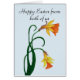 This Easter greeting card has my hand drawn and colored image of a pretty Easter jonquil, narcissus flower, in sunny yellow. This flower has two large blooms and blade like leaves. You can change the text on the inside and outside of this card and also change the background color if you like.