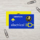 A blue cover features a yellow lampshade bulb and power plug design. At the top is your prestigious name alongside a gold home power gauge logo you can use. The business name "electrical" which you can change is at the base of the card.