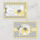 Grey and white chevron print with yellow accents with bird perched on elephant and a 3D-look polka-dot bow bring a book card design for a baby shower.