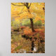 White Ash tree in yellow fall folliage over a quiet forest stream in Autumn, in Acadia National Park, Maine