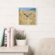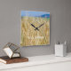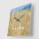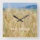 Wall Clock featuring a photo of summer rural landscape. We see yellow wheat fields under the blue sky. Rustic accent to your living space, stylish gift for country and farmhouse style lovers. You can replace the text "Cozy cottage" with your own message or delete it. For further modifications (font style, font color, text position) click "Edit design”.