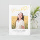This modern graduation announcement features the word finally written in sunny yellow over a single photo. The back of the card can be used for additional text or as an invitation.