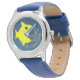 Never be late again. A fish eating the color numbers of a watch. Funny item for kids