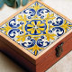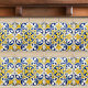 Add a splash of Mediterranean sunshine to your home with our Golden Fleur-de-Lis Azulejo Tile Print. This exquisite piece captures the vibrant beauty and intricate designs of the iconic Portuguese azulejos. The bold golden yellow and rich royal blue hues are accented by delicate touches of white and orange, creating a warm and inviting ambiance. While it maintains the look of traditional tilework, this print is crafted without the physical relief or bevel for ease of installation. It's a stunning way to bring historic elegance to any room, functioning beautifully as a backsplash, a statement piece, or a unique coaster for your living space.