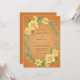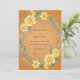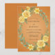 A warm, artistic design features painterly yellow roses and daffodils arranged in a sweeping botanical wreath. Lush green foliage complements the soft floral elements, creating a romantic and ethereal mood. The overall palette evokes a vintage charm, perfect for a memorable occasion.