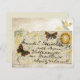 Collage style design, using a vintage envelope, faint floral pattern with yellow flowers and brown butterflies on an aged effect background.