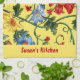 Bright and cheery yellow kitchen towel with blue and red floral pattern, delight the cook of any kitchen as they go about their baking and cooking every day. This would make an ideal house warming or hostess gift. You can even personalize it.