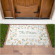 Greet visitors with this personalized doormat featuring soft yellow flowers and green leaves in a Scandinavian minimalist style. Add your family name for a warm, elegant, and nature-inspired welcome to your home.