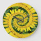 Yellow Floral Spiral Clock on green background, blowing mind spiral created with Droste effect from simple yellow flower