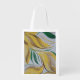 I own a lot of reusable grocery bags, but this one holds its box shape and simply stands up on its own even if there is nothing in it. Its stiffer than your regular reusable bag too, and the material is water resistant. I poured water on the exterior and it didn't penetrate inside to the other side. I'm buying a couple more. Wish I knew how durable these bags were or I would have purchased a few more with my initial order. I also like how it folds and buttons up when not in use, making it easy to put into a handbag or luggage. I haven't used this bag yet, as I purchased it for travel use, like when you're at the airport and need to small sturdy bag to place any airport purchases in, like food, souvenirs etc. I can tell you when you first see this bag, it looks very cheap, but after closer inspection of the material and the seams its a very sturdy reusable bag. I tested it out by putting some really heavy objects inside and I could not observe any stress to the bag at all. Another thing I like about it, is the fact the medium size that this is makes it easy to just carry it in your hand without the bottom of the bag scraping the ground, like most other bags do when you're short. That alone, deserves 5 stars. I just wish there were more colors to choose from! The PDX Airport Carpet printing looks just like the photo, and using this bag during travel might be a conversation piece when/if a native from Oregon happens to see it.