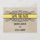 Elegant and classy Flourish Border Save the Date Postcard featuring a vintage look background and a fancy swirl and lemon zest yellow stripe border. This stylish design is the perfect choice for announcing your vintage deco chic inspired wedding. Easy to customize, simply add your wedding details in the text fields provided. Click "Customize It" to find more personalization options.