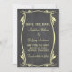 Elegant and trendy Flourish Chalkboard Save the Date Announcements featuring a chalkboard look background and a fancy swirl and leaf art deco border in yellow. Easy to customize, simply add your wedding details. Click "Customize It" to find more personalization options.