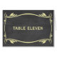 Elegant and trendy Flourish Chalkboard Table Number Card featuring a chalkboard look background and a fancy swirl and leaf art deco border in yellow. Easy to customize, simply add the appropriate table number(s) in the text field provided. Click "Customize It" to find more personalization options.