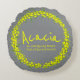 Gouache and watercolor yellow wattle acacia flower wreath personalized girls pillow. Personalize with your own name and name meaning on the front of the pillow. Currently reads Acacia An intriguing flower. Full of joy and beauty. © Original painting and design by Sarah Trett for www.mylittleeden.com