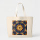 This product is a yellow flower pattern tote bag. It is made with patterned yellow flowers and has a blue background. You can use it when going to a store near your home or meeting a friend.