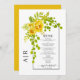 This beautiful wedding menu card showcases an enchanting design that incorporates a delightful arch frame adorned with vibrant yellow cactus flowers and lush green leaves, elegantly positioned in the left corner. The inclusion of your monogram adds a personal touch to this captivating artwork. The names are thoughtfully presented in an exquisite script typography, further enhancing the overall aesthetic appeal. The back of the menu card is adorned with a solid yellow color, creating a harmonious and visually pleasing composition. The cover has been designed using some assets from Freepik.com