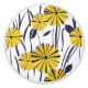 Seamless retro style illustration with yellow flowers and blue leaves on white background