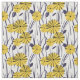 Seamless retro style illustration with yellow flowers and blue leaves on white background