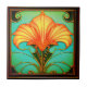 Add a touch of class to your home with an Art Deco Flowers ceramic tile. This botanical design has the flowing, natural lines that are the base of the Art Deco style. The many shades of green, yellow, and orange, bring a sophisticated elegant style to any space. This ceramic tile is ideal for a backsplash, wall art, or as a stand alone piece of art.