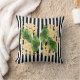 Yellow flowers on black and white stripes throw pillow