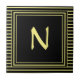 Yellow Frame Monogram Letter N Stripes Ceramic Tile