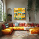 Yellow Framed Desert Art Grid – Vibrant Geometric Poster