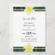 This design features yellow Frangipani / Plumeria flowers. A tropical design elegantly framed with yellow Frangipani flowers and its leaf greenery. The bride's and groom's names are emphasized with the matching green color from the leaves. The reverse of the design mimics the other side. These popular tropical Hawaiian flowers are ideal for a rustic destination beach wedding. Tropical wedding save the date card design with modern elements. Matching wedding invitations and other stationery items are also available.