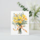 A greeting card with a bouquet of yellow freesia flowers and a gold ribbon can be useful for various occasions, including: