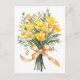 This beautiful greeting card features a stunning bouquet of yellow freesia flowers adorned with a shimmering gold ribbon. It's a vibrant and elegant expression of heartfelt wishes.