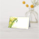 This folded name place card is shown in basic white with a lovely yellow freesia flowers art print.