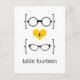 Quirky and chic Geeky Glasses Wedding Table Number Postcard featuring a yellow heart flanked by two pairs of geeky eyeglasses, a manly pair and a girly pair representing the groom and bride. This offbeat but sophisticated table card is perfect for your nerdy wedding! Easy to customize, simply add the personalized text of your choosing. Click on the "Customize It" button to find additional personalization options.