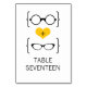 Quirky and chic Geeky Glasses Wedding Table Card featuring a yellow heart flanked by two pairs of geeky eyeglasses, a manly pair and a girly pair representing the groom and bride. This offbeat but sophisticated table number card is perfect for your nerdy wedding! Easy to customize, simply add the appropriate table number(s) in the text fields provided. Click on the "Customize It" button to find additional personalization options.