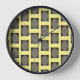 Yellow rectangles frame this modern and geometric design! Soft hearts, vines and sugar plums are ebbed inside the shapes! This stunning clock will make a stylish addition to any room!