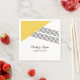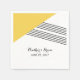 Modern and trendy Geometric Stripe Wedding Paper Napkins with a yellow triangle and thinly striped accent. These simple yet elegant napkins are set up to be easily customized with your wedding information. Find more customization options by clicking Customize It.