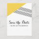 Modern and trendy Geometric Stripe Save the Date Postcard with a yellow triangle and thinly striped accent. This simple yet elegant postcard is set up to be easily customized with your wedding information. Find more customization options by clicking Customize It.