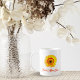 Floral coffee cup with a Gerber Daisy bloom motif in yellow and orange. As a gift for Mom or to personalize with your own information, this mug features lovely orange writing that matches the center of the blossom and changable script.