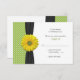 The text on this yellow gerbera daisy green and white polka dot black ribbon wedding reply or RSVP card is fully customizable. To change it use the personalize option. For more extensive text changes, such as changes to the font, font color, or text layout, use the customize option. This card could also be used as a reception, direction, and/or accommodation card. All you need to do is change the text. NOTE: This invitation is a flat design without any 3D embellishments.