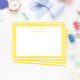 Cheery yellow gingham check is a charming way to celebrate a new baby with this customized stationery note card.