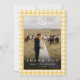 Express your gratitude in style with this charming gingham wedding thank you card. Featuring a classic yellow gingham border and elegant monogram crest, the front showcases your favorite wedding photo with a timeless “Thank You” message. On the back, a second photo and personalized note allow you to share your heartfelt appreciation with family and friends.