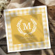 Custom Monogram Crest Wedding Napkins - Yellow Gingham Pattern Design - 6 colors.